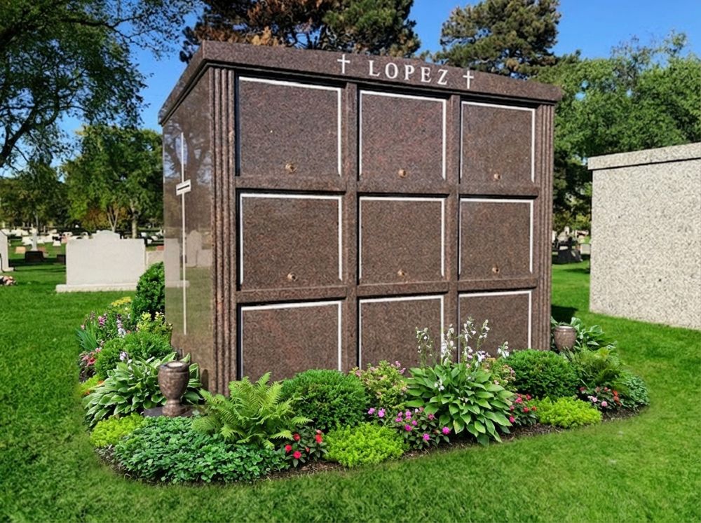 Walk-in mausoleums are typically configured with one to eight crypts and additional cremation niches. These buildings are entirely custom and can be designed and built to fit your unique situation. Starting prices are generally in the $265,000* range.