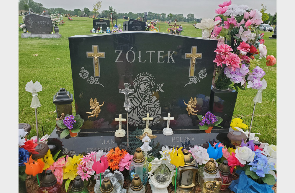 Angel Bronze Enhancement Christian cross Christian figure Flowers Polish Language Vases